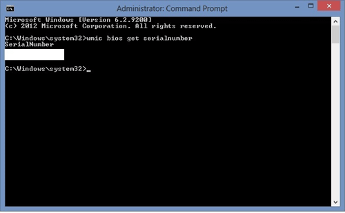 3. If your computer's serial number is coded into your motherboard BIOS, it will appear here on the command prompt window. That's it!