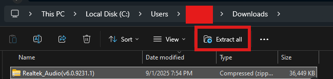 Most drivers will be saved as a zip folder, so once downloaded and saved, we will need to extract the files. You may do this by selecting the zip folder and then clicking Extract All.