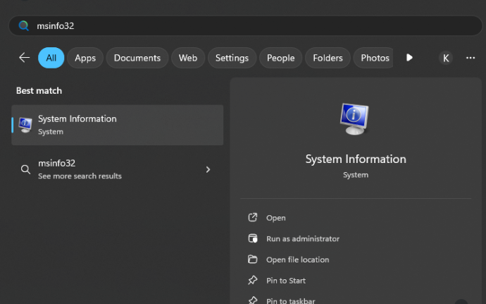 The first step is determining what hardware is in the system to ensure we are getting the correct drivers. Type msinfo32 in the search box at the bottom of the computer, and then click System Information.