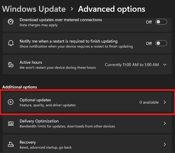 Next, we will need to check Optional Updates, this will show you any pending driver updates that may be needed on the system.