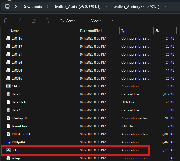 After following the extraction steps the folder will open up on the screen, and you may click on it to open the folder. You will be presented with several files depending on the driver type, but most drivers will have a Setup application that can be run.