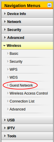 4. Open the Wireless menu and click on Guest Network.