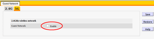 5. The guest network is disabled by default. In order to set it up, first check the Enable box on the Guest Network screen. Note that there are two guest networks that can be configured on this router. One operates at the 2.4 GHz frequency, while the other operates at 5 GHz. In this example, we will setup the 2.4 GHz network.