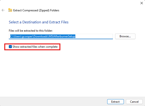If you check the box that says show extracted files when complete it will open the folder for you.