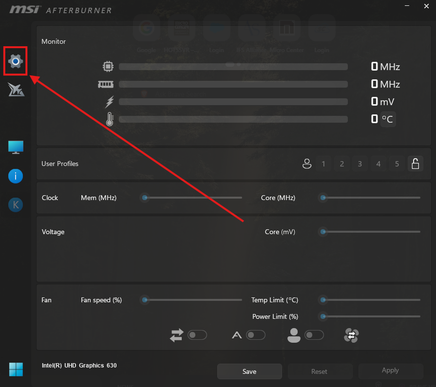 Step 6: With MSI Afterburner open, click the Gear⚙️icon to access the settings page.
