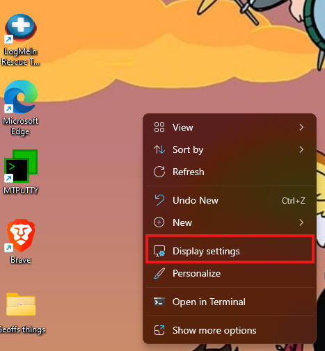 Now, we need to set up some settings for the multiple monitors. Right-click anywhere on your desktop and select Display settings from the list of options on the right-click menu.