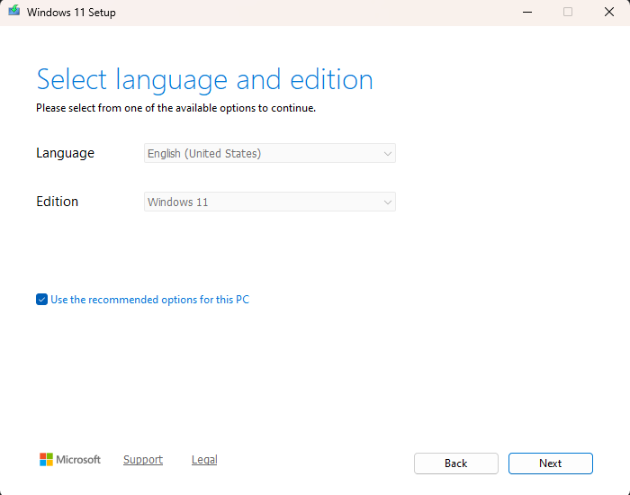 “Use the recommended options for this PC”, that way it applies the correct settings for your computer.