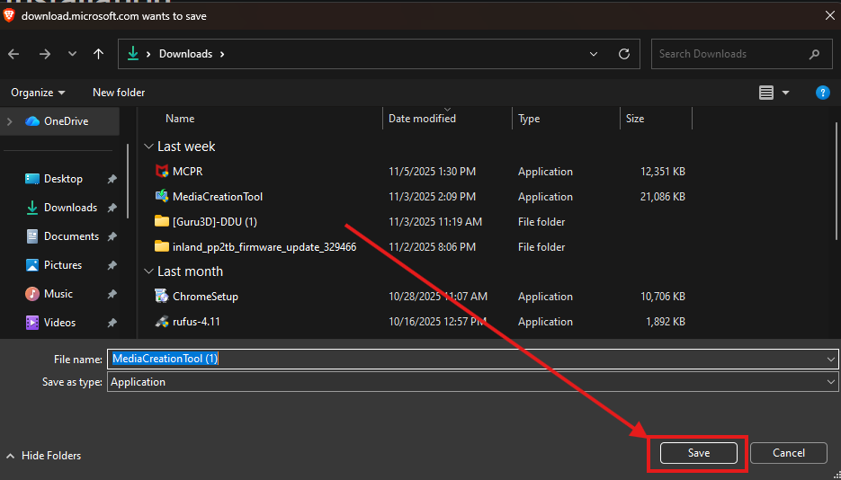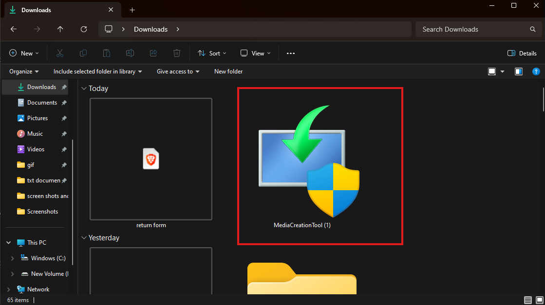 4. Open your Downloads folder on your computer and run the MediaCreationTool file.