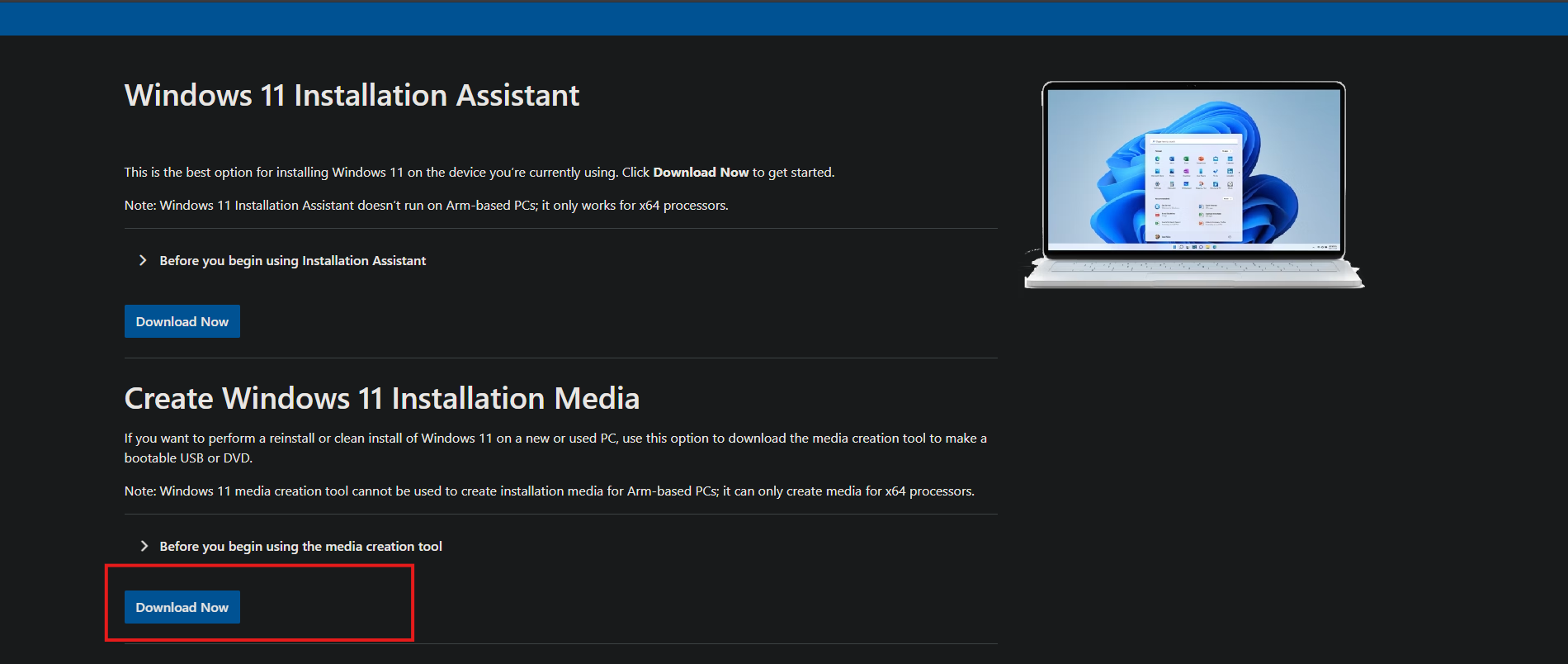 1. Open any web browser and go to Microsoft's website to download Windows 11 at: Download Windows 11