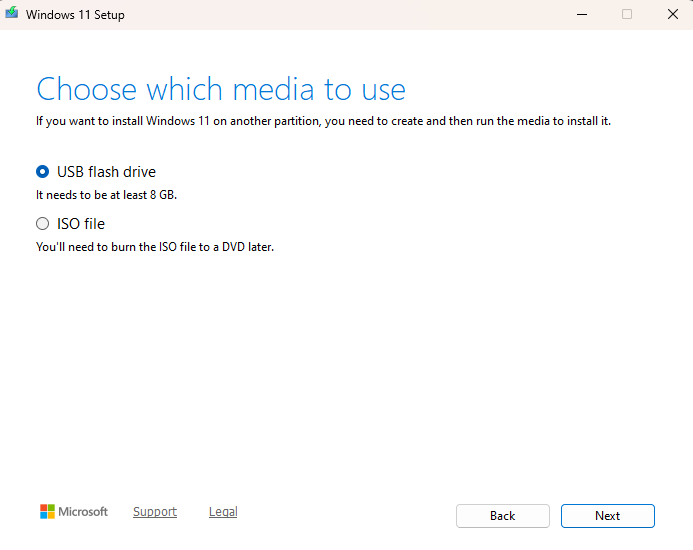 9. Select a USB Flash drive if using a USB. If you want to create a DVD, choose ISO file, which you can burn to a blank DVD later.