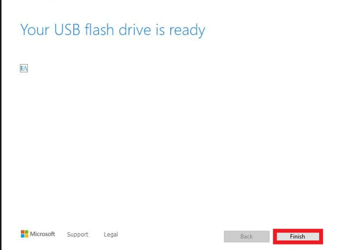 Click Finish and remove the drive. Connect it to the computer you want to install Windows on and power on the device.