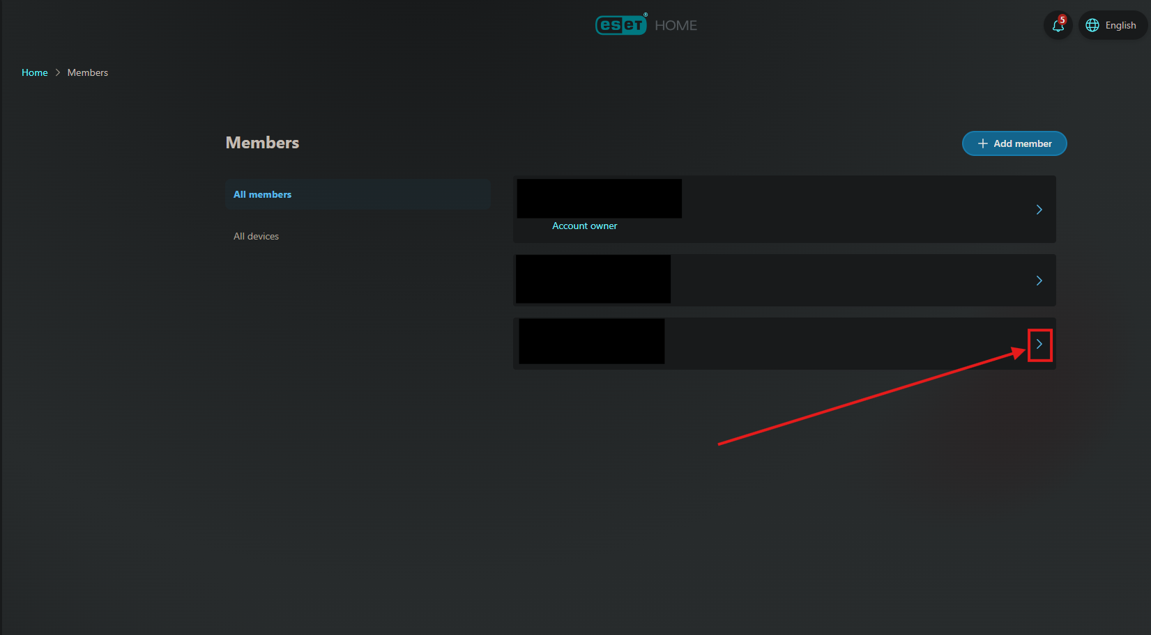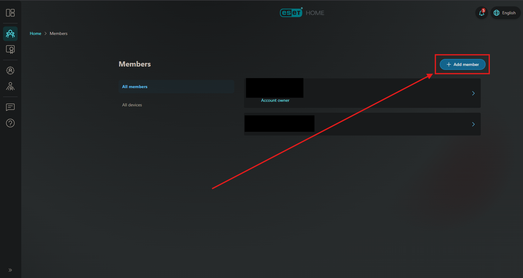 3. In the Members section you will see all the people who are already Members of your ESET Home group (including yourself), to add a new member, click +Add Member in the upper right: