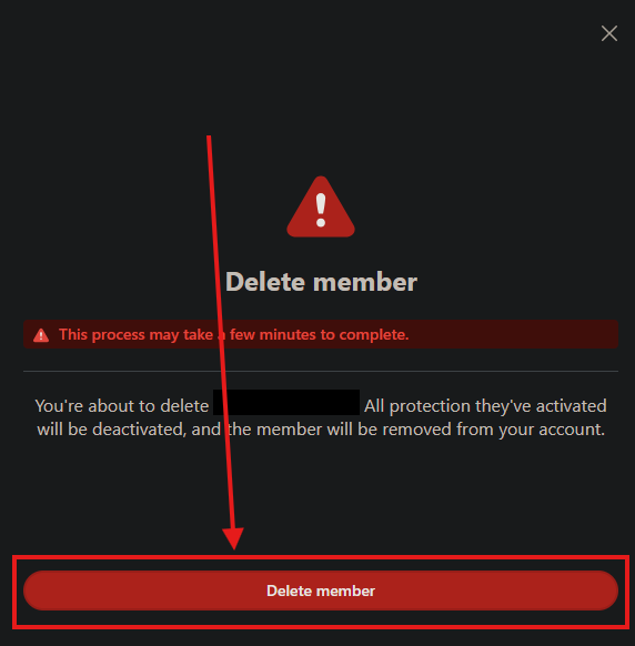 6. A window will pop up, confirming you would like to complete deletion, click Delete member: